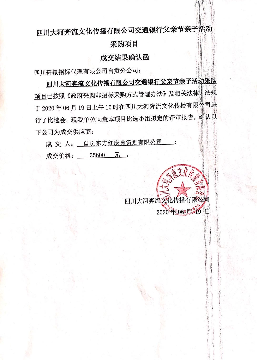 四川大河奔流文化傳播有限公司活動采購項(xiàng)目成交結(jié)果公示
