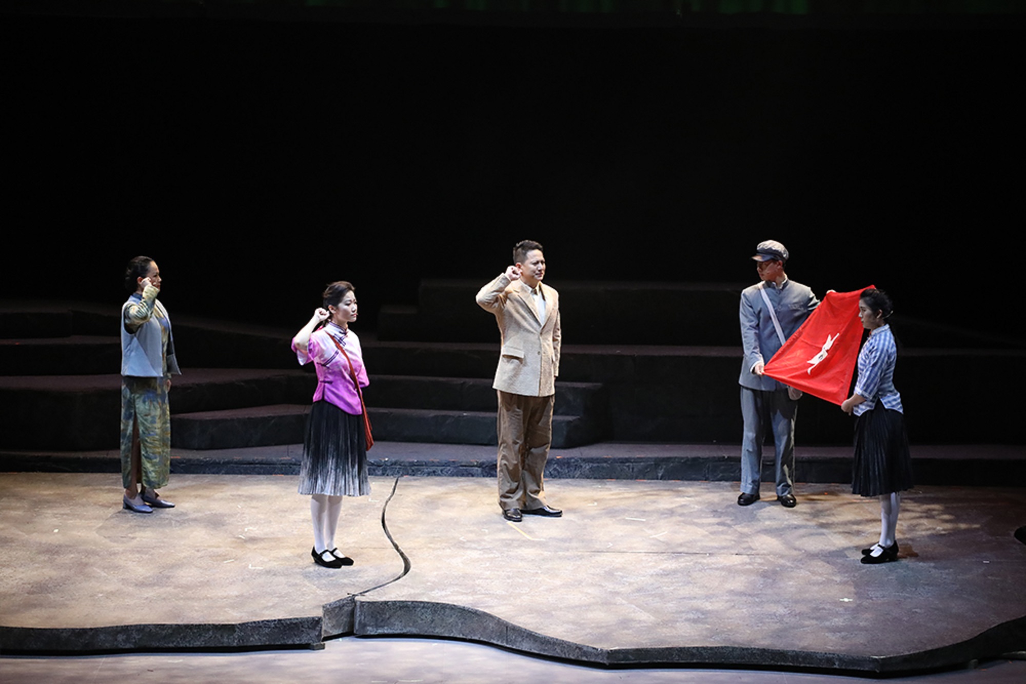 伴隨著輕快的音樂聲,舞臺大幕緩緩開啟,一個關(guān)于理想、青春、信仰的革命故事徐徐展開。舞臺上,一幕幕起承轉(zhuǎn)合的劇情、一首首動人心魄的音樂、一個個有血有肉的人物,藝術(shù)重現(xiàn)了革命先輩江竹筠輝煌燦爛的革命歷程,謳歌她用青春熱血守護共產(chǎn)主義信仰,為國家、為人民英勇赴死的革命情操和崇高氣節(jié),讓現(xiàn)場觀眾接受了一次嶄新的革命洗禮。