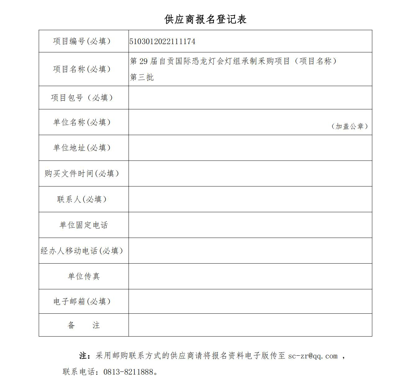 第29屆自貢國際恐龍燈會燈組承制釆購項目(項目名稱)第三批競爭性磋商采購公告