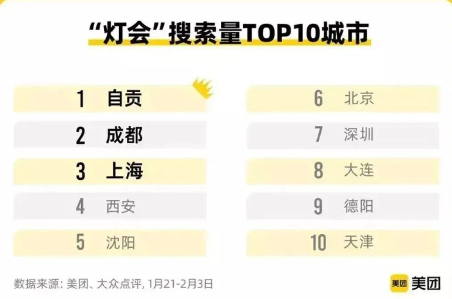 據(jù)了解,除夕至正月十五期間,中華彩燈大世界游客接待52萬人次,同比增長(zhǎng)45%。自貢位列全國(guó)“燈會(huì)”搜索TOP10城市第一名。