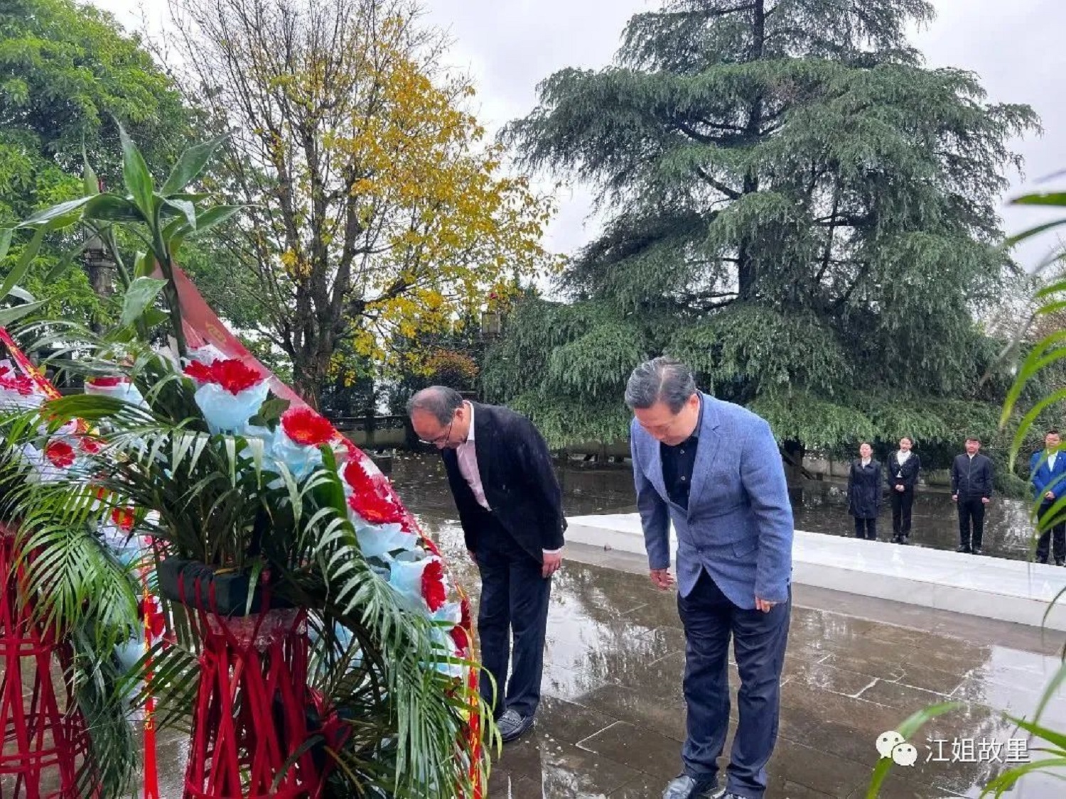 最后,與會領(lǐng)導(dǎo)和嘉賓前往劉伯堅烈士紀念碑處舉行敬獻花籃儀式。宋青山、丁華邁步上前整理花籃緞帶,隨后,全體人員向烈士紀念碑三鞠躬,表達對先烈的深切緬懷和崇高敬意。