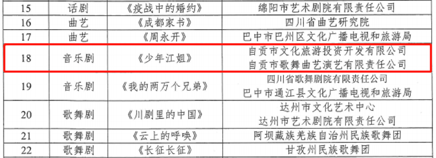 7月12日,四川省文化和旅游廳公布了第三屆四川藝術(shù)節(jié)精品劇目展演暨第五屆四川文華獎(jiǎng)劇目初評(píng)入圍名單,由自貢文旅投公司出品、自貢市歌舞曲藝演藝有限責(zé)任公司制作的原創(chuàng)音樂劇《少年江姐》成功入圍參演參評(píng)。這也是繼音樂劇《紅梅花開》榮獲國(guó)家藝術(shù)基金立項(xiàng)扶持后,自貢文旅投公司再次推出的江姐系列文藝精品力作。