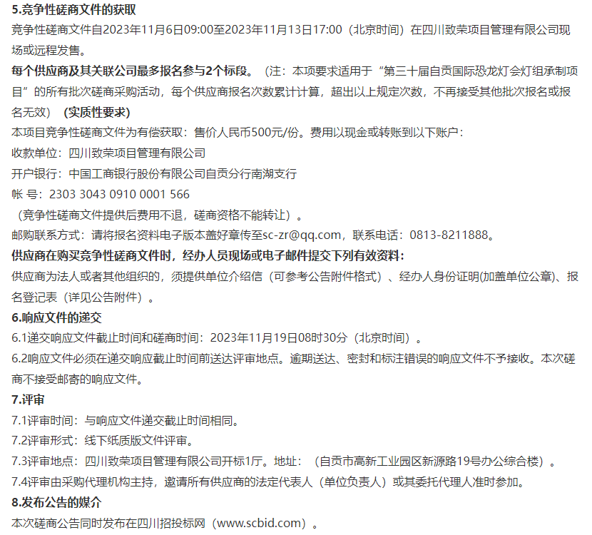 第三十屆自貢國(guó)際恐龍燈會(huì)燈組承制項(xiàng)目第一批競(jìng)爭(zhēng)性磋商采購(gòu)公告