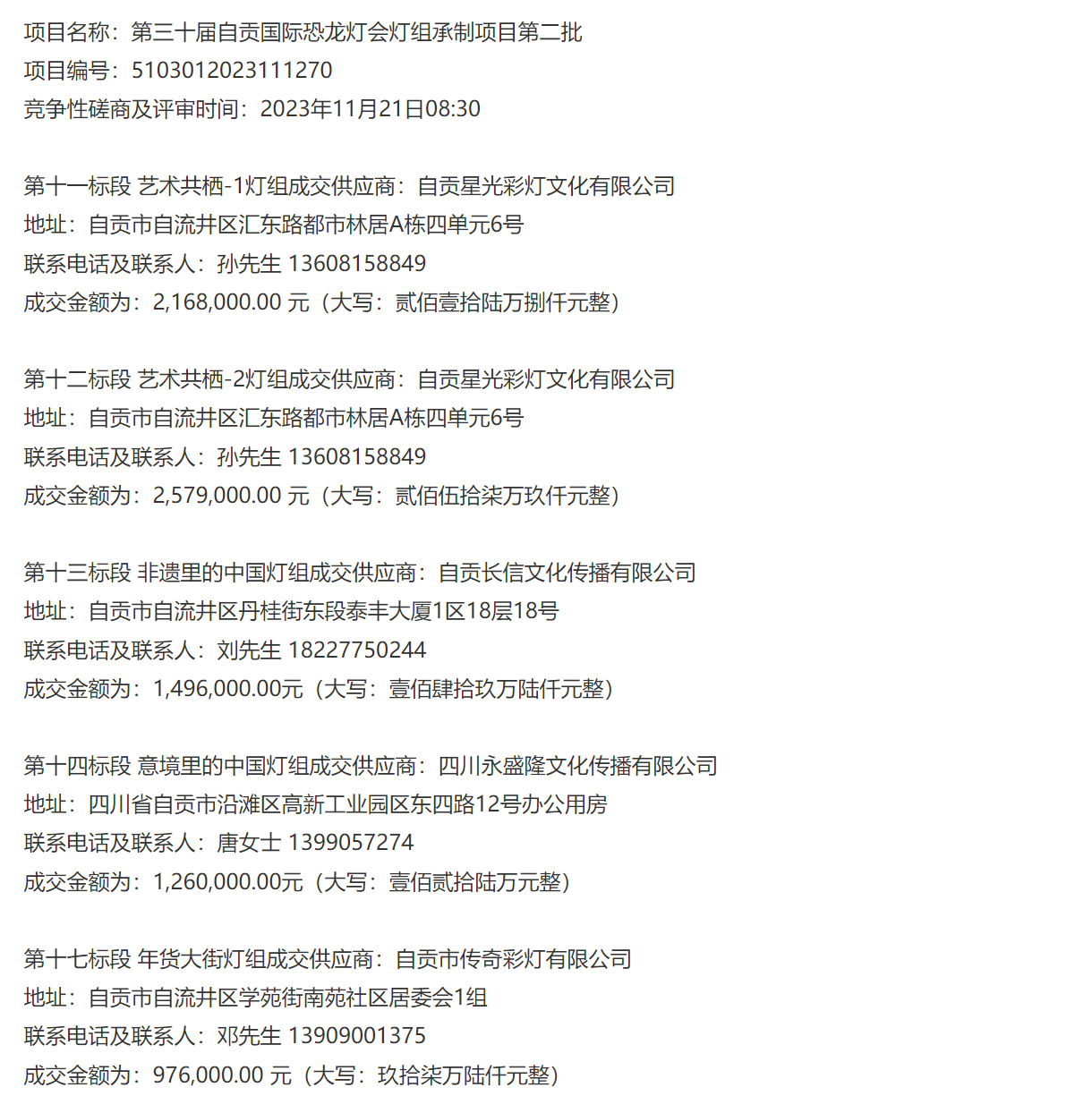 第三十屆自貢國際恐龍燈會(huì)燈組承制項(xiàng)目第二批競(jìng)爭(zhēng)性磋商成交公告