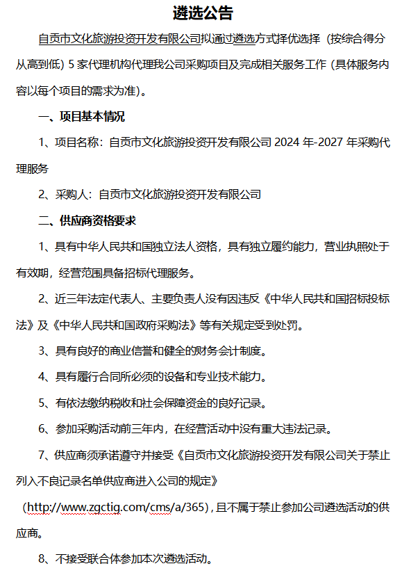 2024年-2027年采購(gòu)代理服務(wù)遴選公告