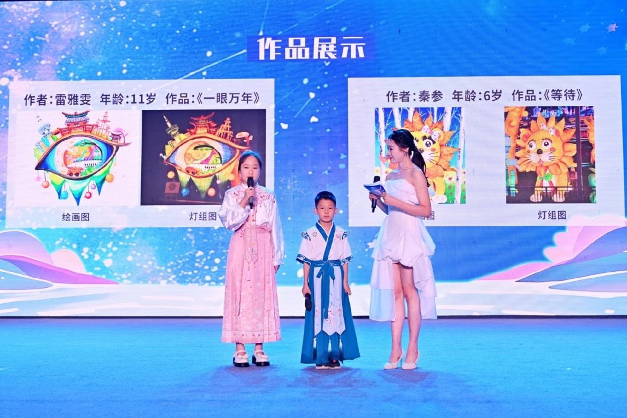 第二屆活動(dòng)的獲獎(jiǎng)“小藝術(shù)家”們也來(lái)到現(xiàn)場(chǎng)分享創(chuàng)作感想及獲獎(jiǎng)喜悅。6 歲的武漢小朋友秦參走上舞臺(tái),眼睛亮晶晶地講述:“去年春節(jié),我畫(huà)的小獅子‘跑’到了第 31 屆自貢國(guó)際恐龍燈會(huì)!看到它亮閃閃地站在彩燈群里,就像從畫(huà)里活過(guò)來(lái)一樣,我開(kāi)心得晚上都睡不著覺(jué)!” 自貢本地女孩雷雅雯則詩(shī)意滿滿:“每當(dāng)提起畫(huà)筆,家鄉(xiāng)的鹽井、彩燈就浮現(xiàn)在眼前。希望通過(guò)我所創(chuàng)作的《一眼萬(wàn)年》,讓全世界看到了自貢的美?!?據(jù)悉,她的作品經(jīng)短視頻傳播后,收獲超千萬(wàn)播放量,連《人民日?qǐng)?bào)》新媒體都為其點(diǎn)贊并轉(zhuǎn)載?!敖衲辏疫€要畫(huà)出更酷的作品投稿!”雷雅雯說(shuō)。
