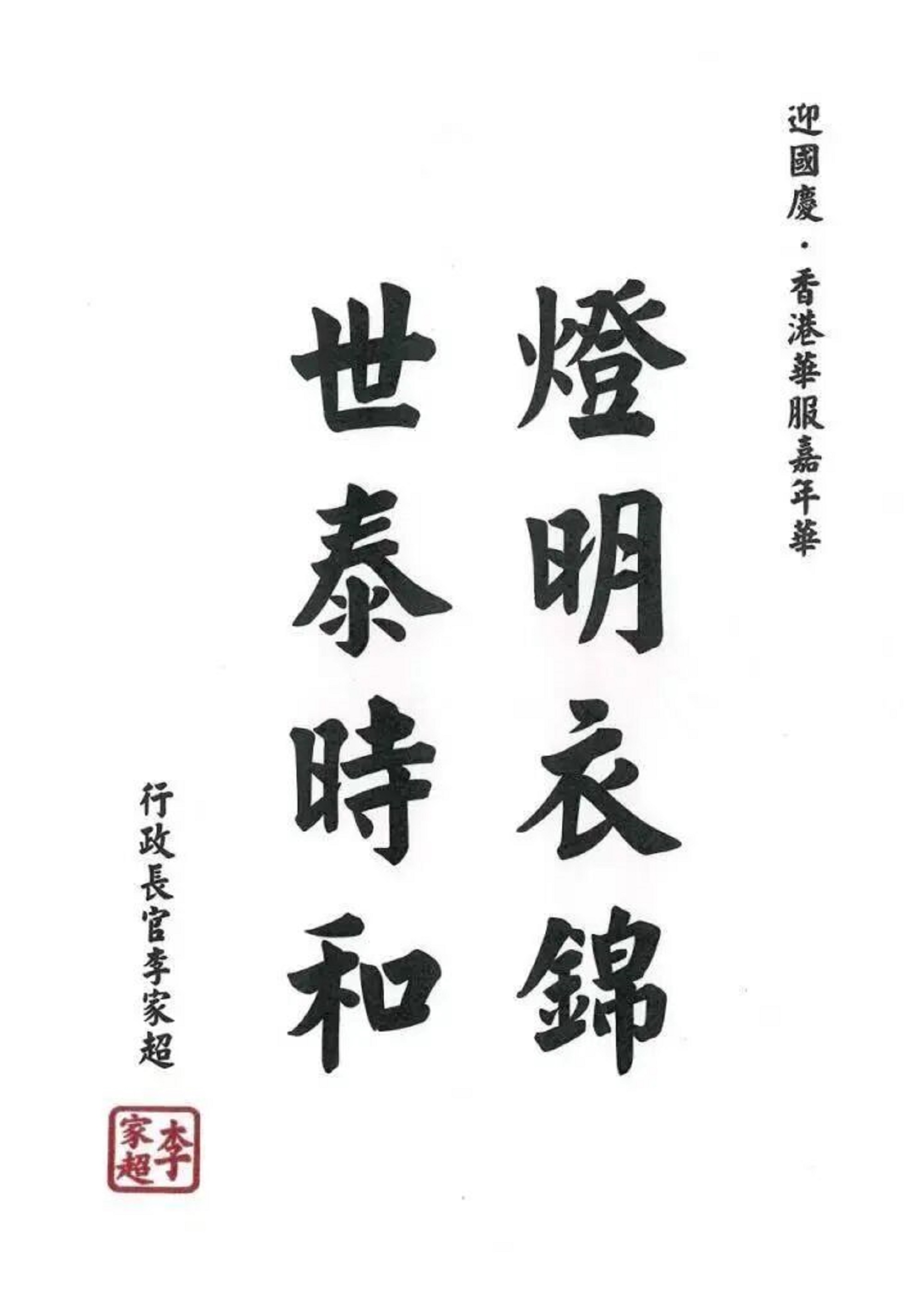 香港特別行政區(qū)行政長官李家超題詞