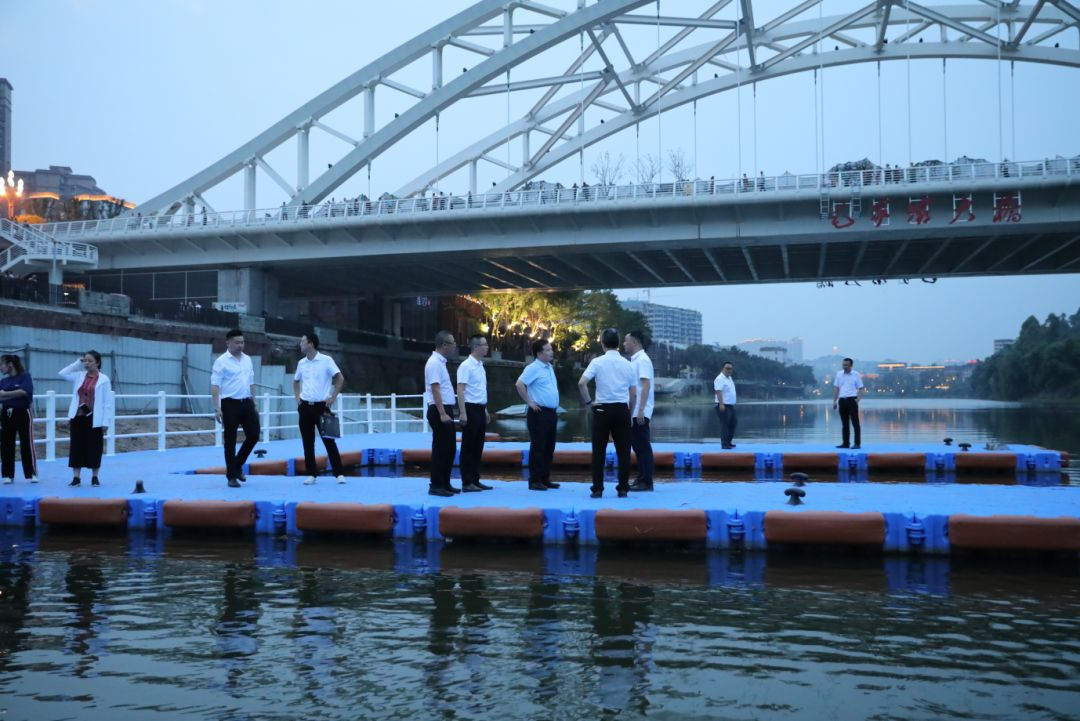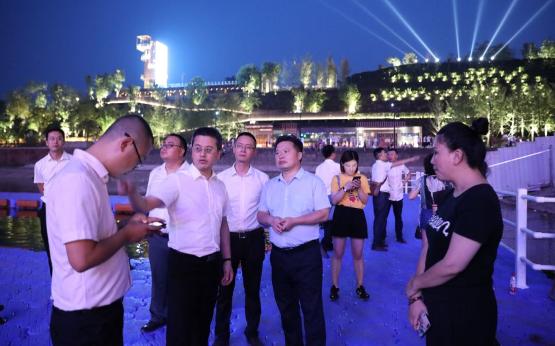 當(dāng)天傍晚7點(diǎn),宋青山又帶領(lǐng)自貢文旅全體中、高層管理人員及相關(guān)項(xiàng)目組工作人員前往開幕式現(xiàn)場(chǎng)及釜溪夜游項(xiàng)目執(zhí)行現(xiàn)場(chǎng)進(jìn)行了細(xì)致入微的實(shí)地考察。