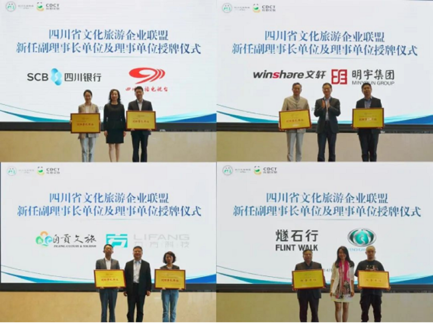 2023年4月25日下午,四川省文化旅游企業(yè)聯(lián)盟第一屆第六次理事會(huì)會(huì)議在成都文旅集團(tuán)召開(kāi),29家理事單位和候選理事單位參加會(huì)議。會(huì)議全面總結(jié)和部署了全省文化和旅游工作并審議通過(guò)了8家聯(lián)盟新任副理事長(zhǎng)單位及理事單位授牌,自貢文旅投公司成為省文旅聯(lián)盟副理事長(zhǎng)單位。