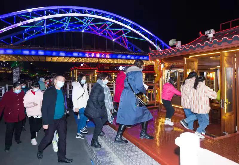 元旦假期期間,許多外地的游客慕名而來(lái)到“夜游釜溪”一睹《生命之樹(shù)》風(fēng)采,僅1月1日就有來(lái)自成都、重慶、德陽(yáng)等地的近300名游客登上了游船。