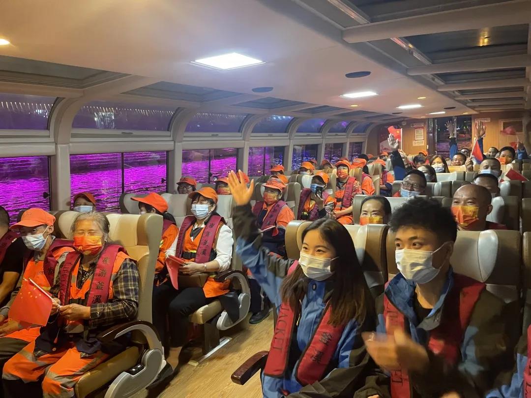10月7日晚,途觀公司與自貢九七七愛心公益協(xié)會聯(lián)合舉辦了“夜游釜溪,觀水上燈會,享文化盛宴”公益活動。當(dāng)晚,27名赴瀘縣抗震救災(zāi)的志愿者及30名環(huán)衛(wèi)工人登上“夜游釜溪”游船,欣賞光影交錯的釜溪河美景,共同慶祝祖國72周歲生日。