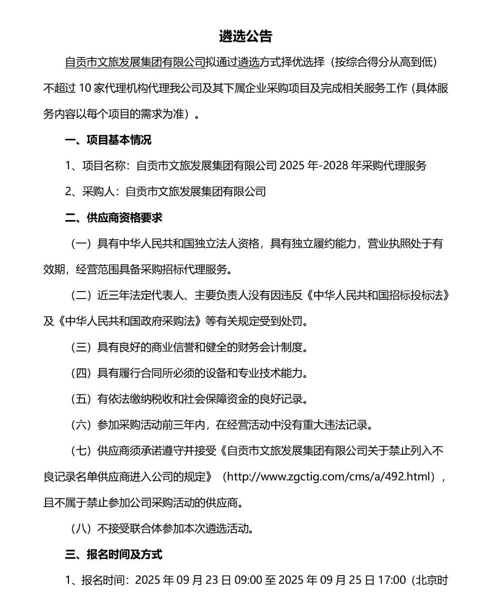 自貢市文旅發(fā)展集團(tuán)有限公司2025年第二次社會(huì)化招聘公告